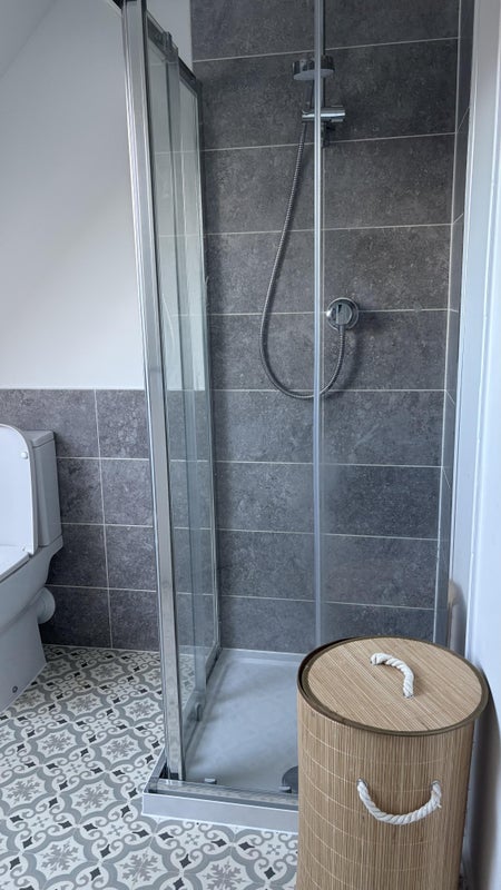 Spacious, bright room with a private bathroom and 2 storage spaces. Free access to the kitchen, garden, and a free parking spot.