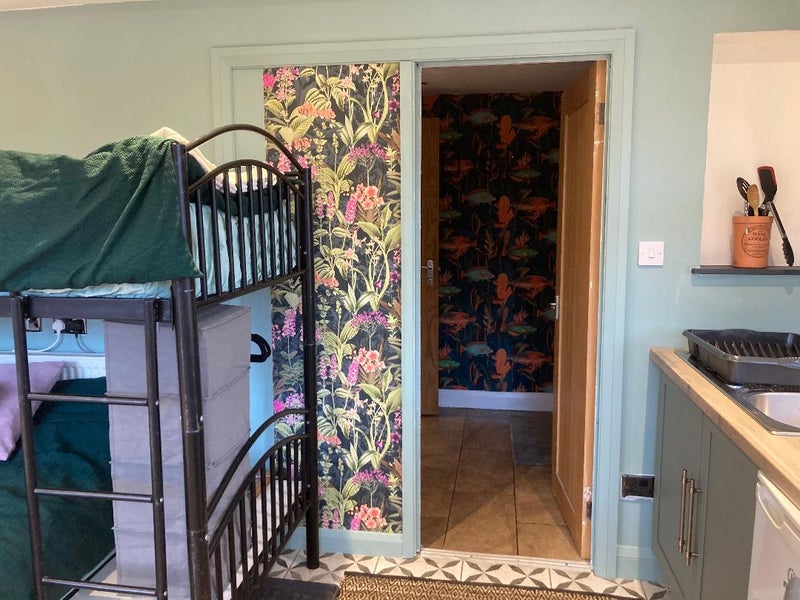 This annex is separate from the main house. It has it's own front door - double and single bed, basic kitchen and en suite shower/toilet.
