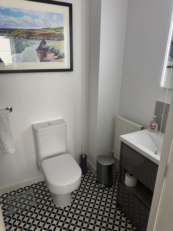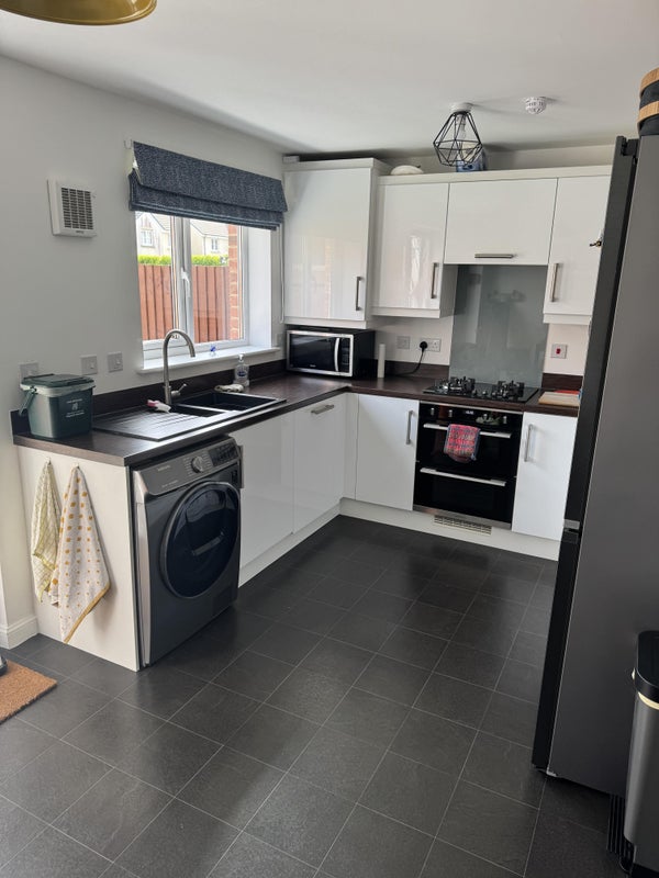 I work full-time and only in the office one day a week so I work from home a lot. The living room is shared and the kitchen has a washer/dryer, oven, air fryer etc. The garden is low maintenance and you can peg clothes out. There’s fast fibre too, at 900mbps. There’s space within my designated parking if you have a car.