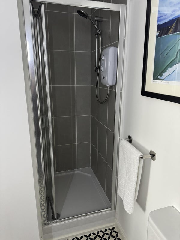 The room is en-suite with toilet, sink, shower, and the de-mister pad on the mirror is very useful!