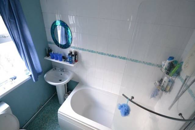 The house has a decent size shared kitchen/lounge area. This leads through to the bathroom with toilet and shower-over-bath and a separate toilet. There is a garden with patio and lawn area and a concrete outhouse, with access from a lane which runs behind the houses. The house is a bit 'old-fashioned' in general, but current tenants keep it nice and clean at least.