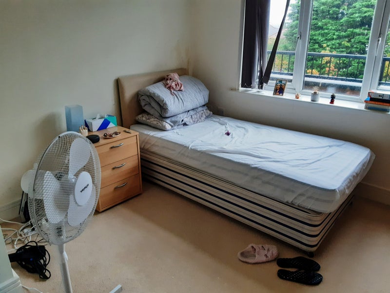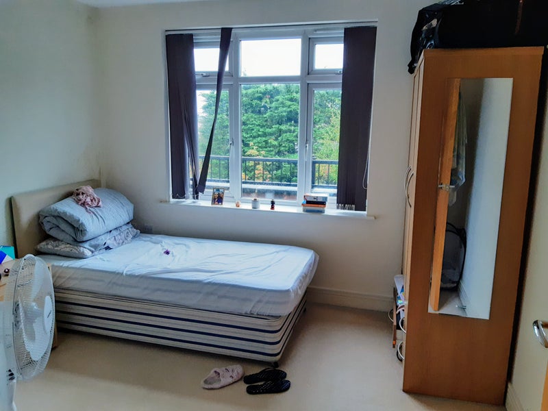 The room comes with its own bathroom and the flat has a parking space and a balcony overlooking a large communal garden.