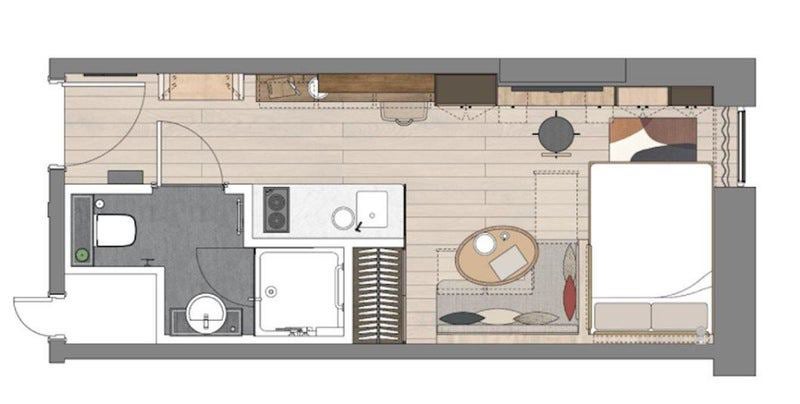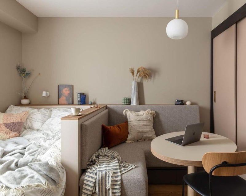 - Cupboard and storage underneath bed and seating area