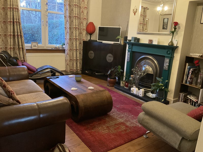 Large shared kitchen, 2 bathrooms, living room, dining room, sunroom, garden and off street parking. Bus routes #43, 21, 17, 26 and 1 nearby. Journey to centre of Edinburgh or airport takes 15-20 minutes. Opposite Corstorphine Hill Nature reserve and near Cramond Beach. Garden is SW facing and new sunroom extension provides a beautiful space to enjoy our rare Scottish sunshine. Looking for clean and tidy professional or post graduate to rent out spare room. Room has double bed with large storage drawers below, wardrobe, desk, chair, and multiple plug points. I work full time and am often busy evenings and weekends, so great for someone who prefers a quiet space. My daughter is staying with me just now too, before she goes travelling.