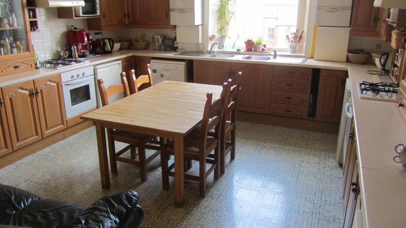 There is GCH, high speed broadband/wi-fi and a well equipped kitchen which is kept clean and tidy. We have at least 2 of each type of appliance e. g. 2 washing machines, 2 cookers, 3 fridges etc. There's a bicycle rack in entrance lobby.