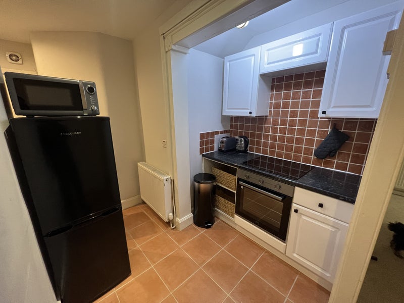 The kitchen has a fridge freezer, new hob and oven, kettle, cutlery, plates and pans. There is also a microwave, toaster, air fryer, washing machine and dry-soon rack. There is a shared shower room with toilet, and there are three big storage cupboards located in the hallway of the flat too for suitcases, etc.