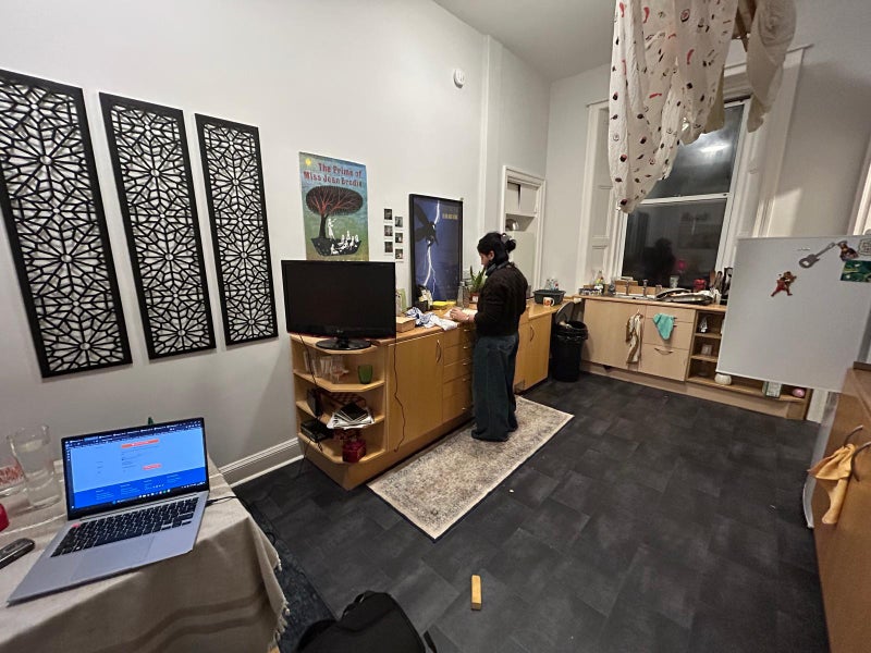 the flat is just off the bruntsfield high street and is in a super nice tenement. it has a really nice kitchen/dining room, a tv room, and a large communal garden.