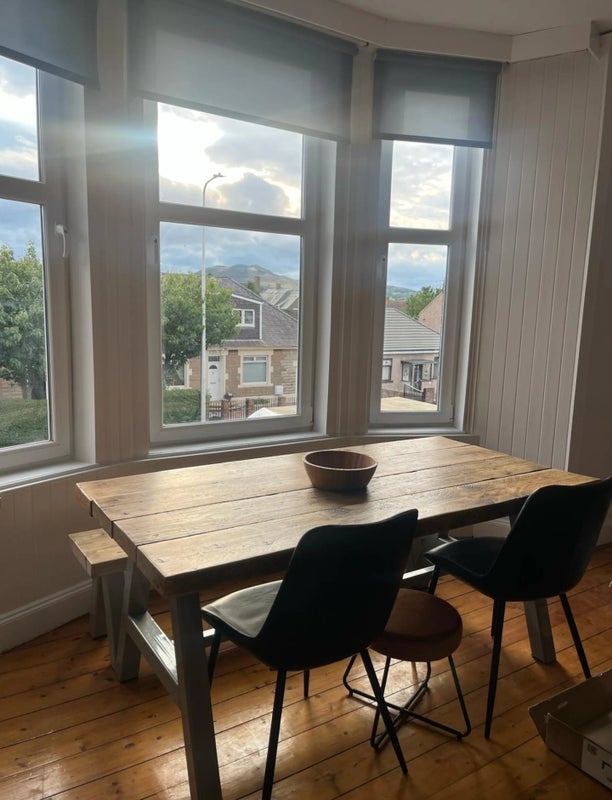 Recently refurbished 3 bedroom flat in great area close to qmu and campus on Milton road farm foods and scotmid close by wee 5 min walk to kinnard park shopping center great transport links to city center internet included gas and electricity 3 way split with other tenants
