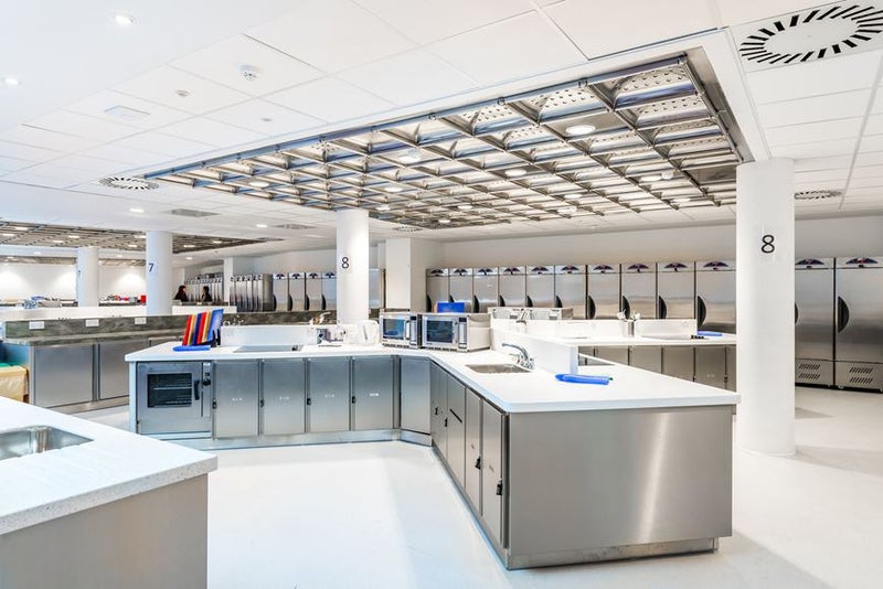 The room comes equipped with a personal and private bathroom including a toilet, stand-up shower and sink. Heating and internet are included in the rent. The kitchen is shared on the ground floor with the rest of the residence. This includes 7 kitchens in total (on the ground floor) equipped with 4 sets of stoves, 4 ovens, 7 sinks, and 4 microwaves EACH (each kitchen has these appliances), and kitchen utensils are provided (ie forks, knives, spoons, plates, pots, pans etc). The kitchen also includes a fridge, freezer, and personal cubby.