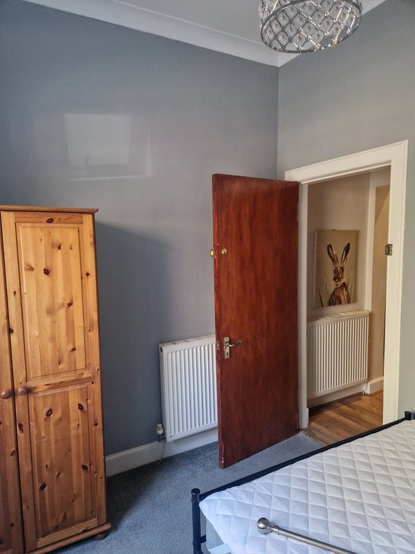 Double room to rent in 2 bed ground floor flat. Furnished with double bed and mattress, wardrobe and chest of drawers.