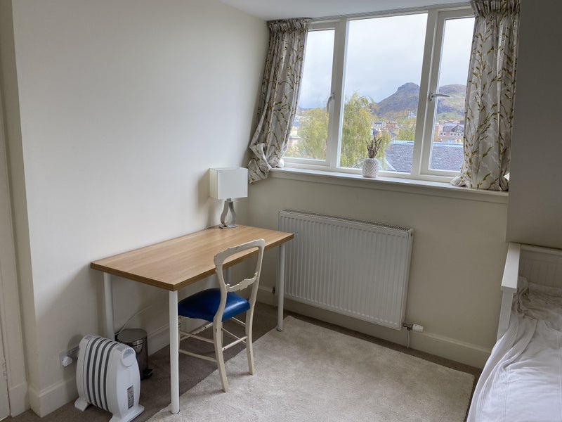 Quiet, furnished, sunny double room at top of house with ensuite, fridge and stunning view of Arthur's Seat. Great location for university students. I am a busy, professional Kiwi in my 50s with a swiss husband (based in Switzerland) I currently share the flat with a female, postgraduate student. Shared facilities include modern kitchen with dining table, living room, washing machine, fibre-optic wifi, garden and garage. Looking for hardworking, quiet-living lodger. Rent includes energy, utility bills (not council tax) and is on a weekly basis.