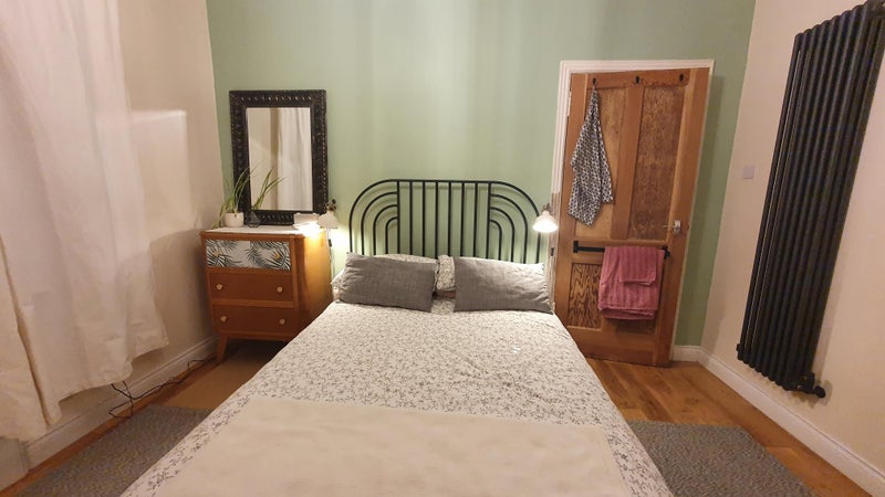 A comfortable furnished double room with double bed for single occupancy in a 2 floor home. The tram and main bus links are minutes away, with plenty of free parking available. There is a shared kitchen, bathroom, living room and separate dining room on the first floor with the double room on offer. The flat has a main door entrance and a lovely garden with summer house and log burner.