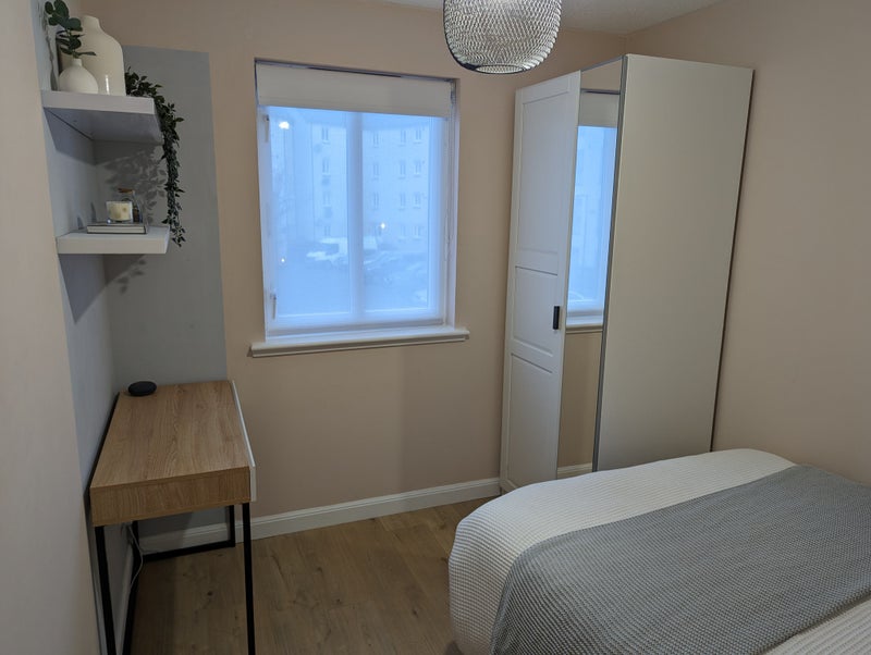 1 double bedroom available for rent in a 2-bedroom, 1st-floor flat in Dalry, Edinburgh. The flat is fully furnished, with a shared living room, kitchen and bathroom.