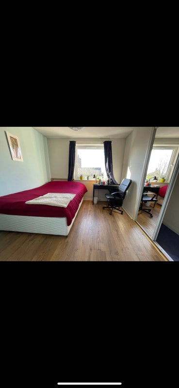 The room is en-suite, vegetarian kitchen, and the flat is well-connected with several bus stops nearby.