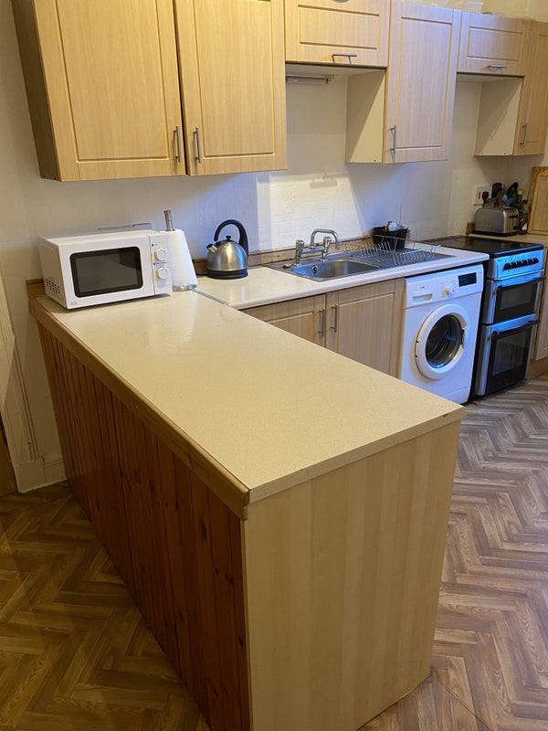 The shared kitchen is fully equipped with hob, cooker, microwave, fridge and freezer, washing machine, iron and ironing board, hoover.