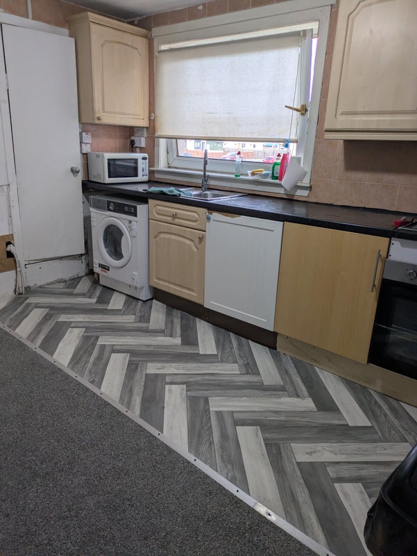 Flat is fully furnished WITH fitted kitchen/modern appliances, fridge freezer, plenty of storage room, open plan kitchen/living room.