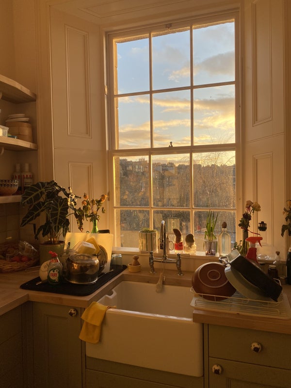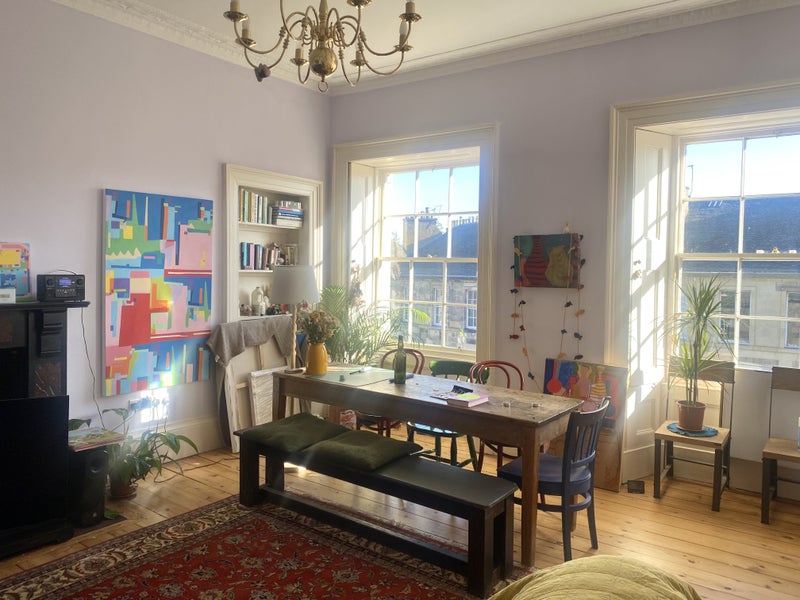 The flat is a top floor 3 bed on Broughton street, lots of steps but also the most amazing light especially coming in to spring (living room in the morning & kitchen in the evening)