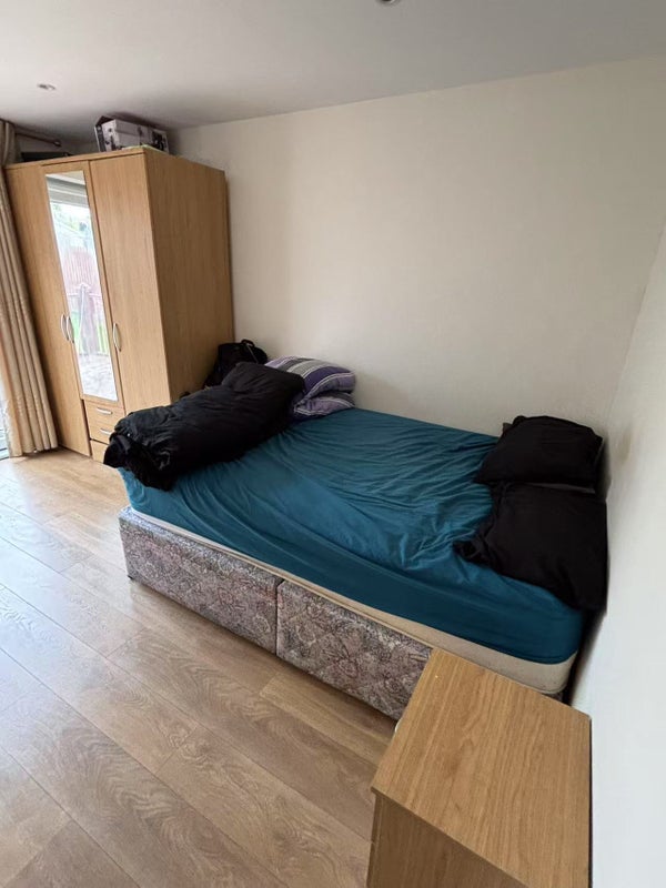 Bedroom has double bed. Wardrobe. Desk. Chair. You have a downstairs shower to use and a shower room upstairs too.