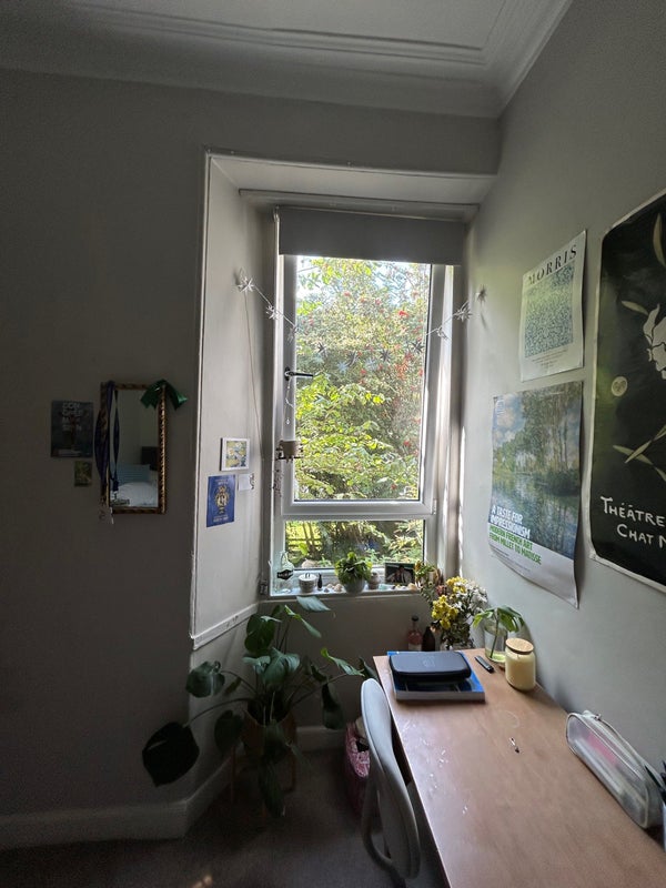 Hello, in a 3rd year English literature student at the university of Edinburgh. My current flatmate is graduating so I am looking for a student to take her old room. It is a double room with a double bed in a 2 bedroom flat. The flat has good transport links via bus to Princes Street and Old town, and is 5 minutes from Haymarket station.