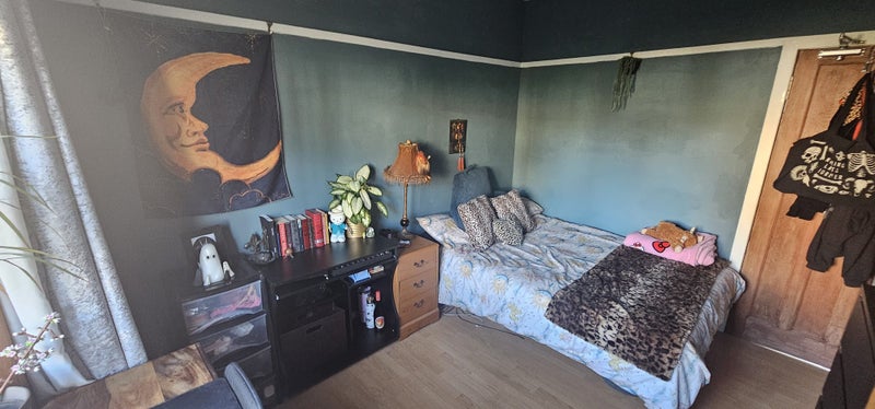 The room: Currently has two desks, office chair, large wardrobe, and bedside cabinet. More furniture available if needed.