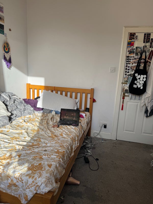 The bedroom gets a lot of natural light as it has a lovely large window. It also has a double bed and is a fairly spacious room. Sheets, trinkets and decorations will be removed!