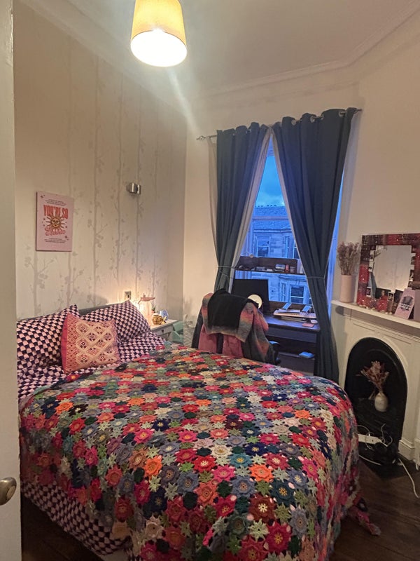 The room is double with room for a desk (which is not included) and you would have sole use of the main bathroom (which includes a bath) as the other room has an ensuite. Kitchen and living are shared with spacious dining area. The flat is furnished but is on the third floor so not suitable for those with mobility issues.