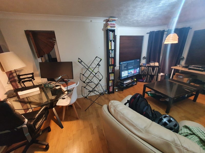 The flat is on the ground floor and consists of: 2 spacious bedrooms (each room has a double bed); a shared bathroom; very spacious living room that includes a table for eating meals and wfh computer equipment; and a kitchen with good cupboard space and a window.