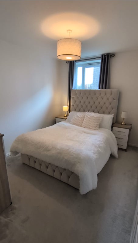 A double bedroom with an inbuilt wardrobe and a private bathroom available for rent.