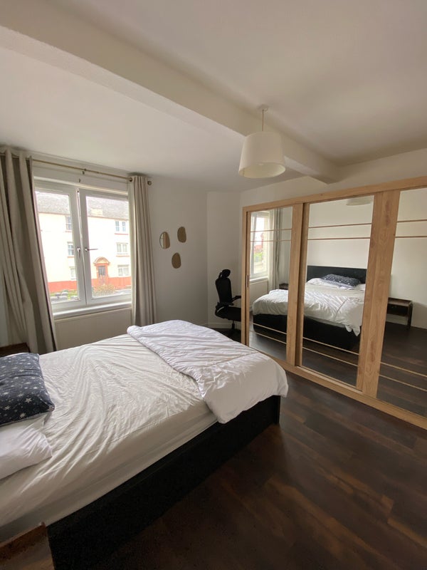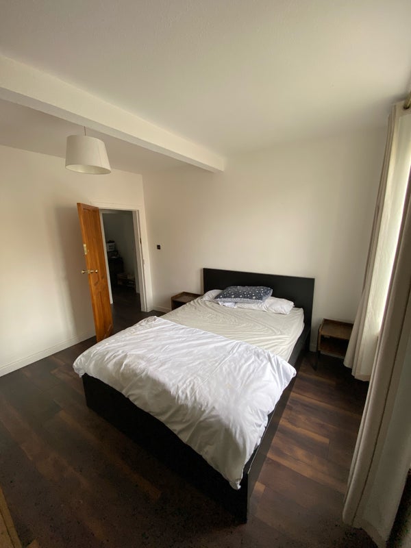 A bright and comfortable king-size room is available to rent in a well-located flat.