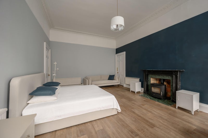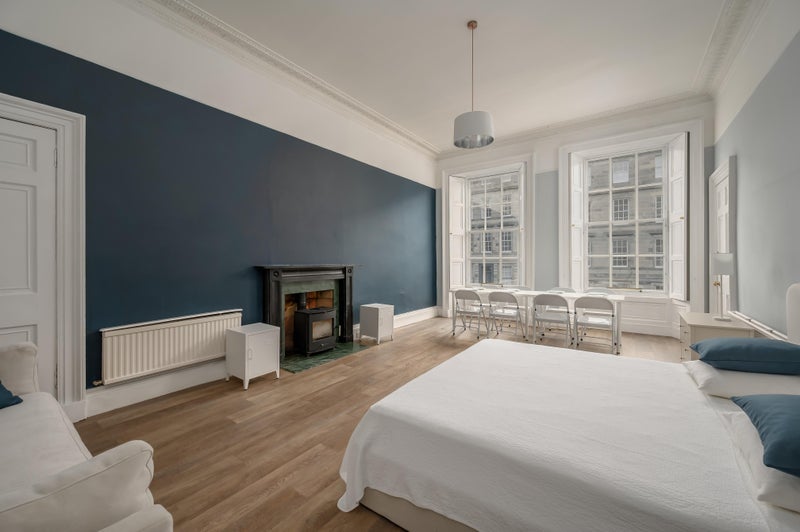 Featuring two near floor-to-ceiling windows, you will have a full view of the famous Dundas Street. Looking right towards Stockbridge and left towards the New Town, it can hardly get better. The subtle double glazing means the room remains warm and relatively quiet.