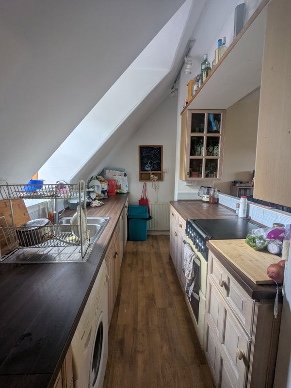 The flat is double bedroom in a two bedroom flat. The flat has an open plan kitchen and living room (pictures 1-3), a single bathroom with a stand up shower (picture 4) and two double bedrooms. The flat has a washing machine, oven, microwave and all the essentials, and a large cupboard for bulky items.
