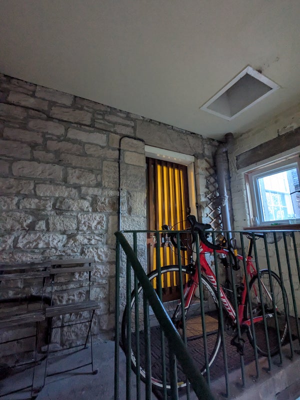 The flat is on a secluded courtyard (Grange Court on Google street view), with parking available and parking permits associated with the property purchasable. The flat also has a private stairwell, with CCTV outside the flat and bike storage outside the flat (picture 5).