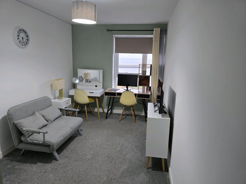Hay there , I have room to rent at eh5 1gt , new neighbours, calm area on 4th floor with nice view on ocean. U will have to be fine with dog bcs I have one . Takes around 20-30 min depending on bus u take to get to city centre , closes bus stop 1 min away . Also 1 min away is grocery shopping and go outdoor . If u interested get in touch to arrange viewing .
