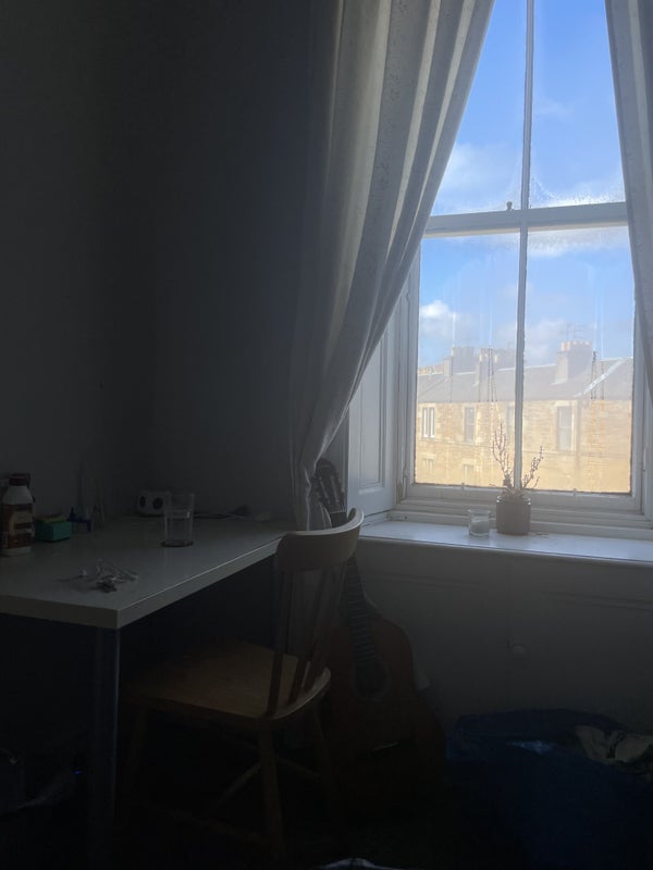 Small fully furnished room in a top-floor 4-bed flat with a view of Tollcross, at the edge of the Meadows.