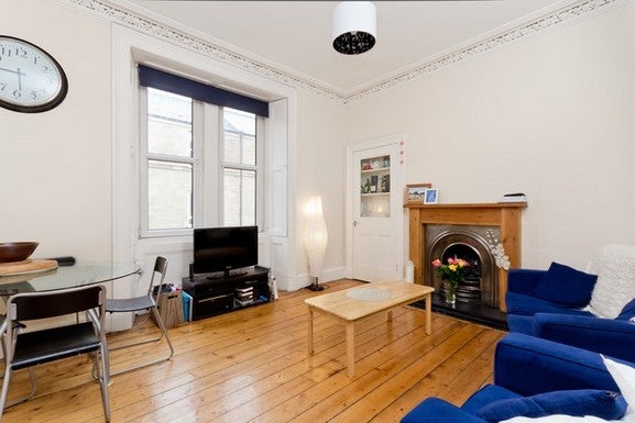 The overall accommodation is bright and well cared for with quality fitting & fixtures. It is quiet/peaceful, spacious with a lovely living room & a large double window, fireplace and a new furniture suite. A kitchen with all utensils and crockery, gas hob, electric oven, dishwasher, fridge-freezer, a spacious bathroom with new shower over bath with unlimited hot water. A separate utility closet with an individual washer machine and tumble dryer. A storage closet. The flat has timber floors throughout, is naturally bright, warm, and safe, and is located on the 2nd story of the building in a quiet street just off the Meadows. There is access to a communal patio at the rear ground floor.