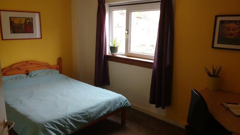 We share a medium-sized but very convenient kitchen and spacious (-ish) living room. Bus stop is one minute walk (No. 35), 5-7 mins to London Rd with many more connections. Waverley station is 10-15 mins walk away, George Square 20 to 25 mins. Shops are 8 mins (small Tesco, Scotmid, Iceland), 12 mins (big Sainsbury's, big Lidl) walk.