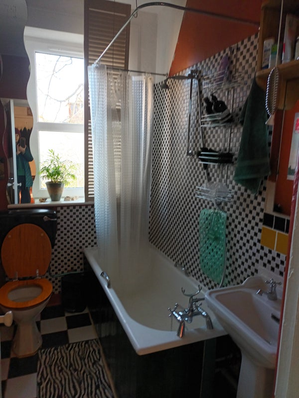 - bathroom with mixer-tap shower heated by combi boiler