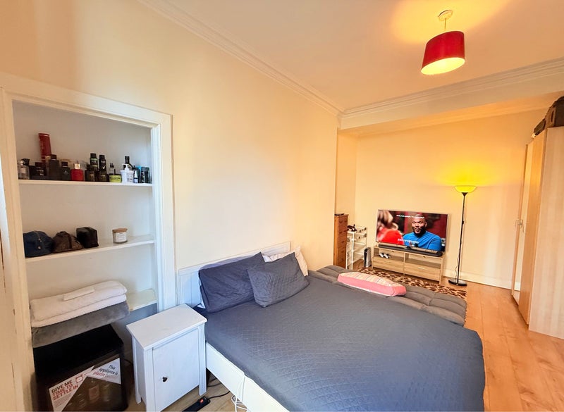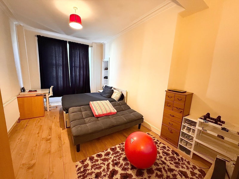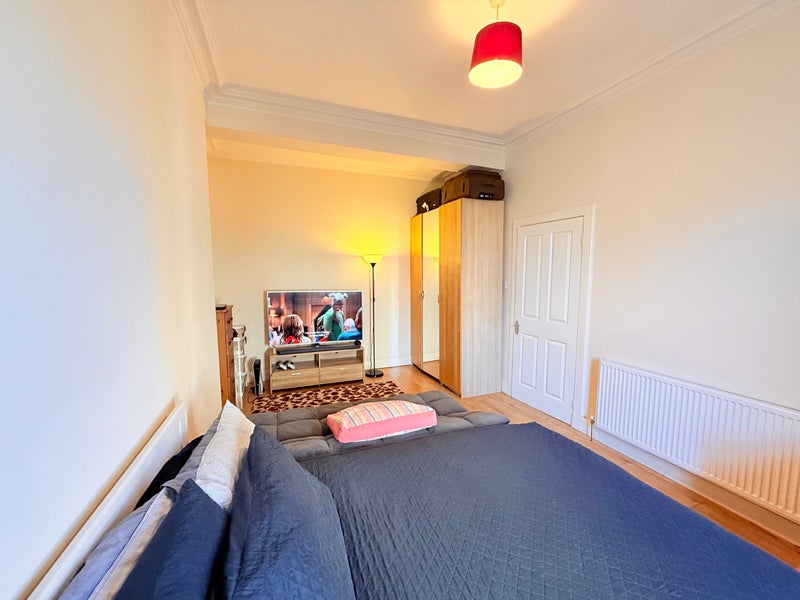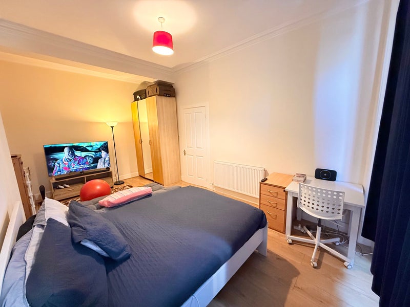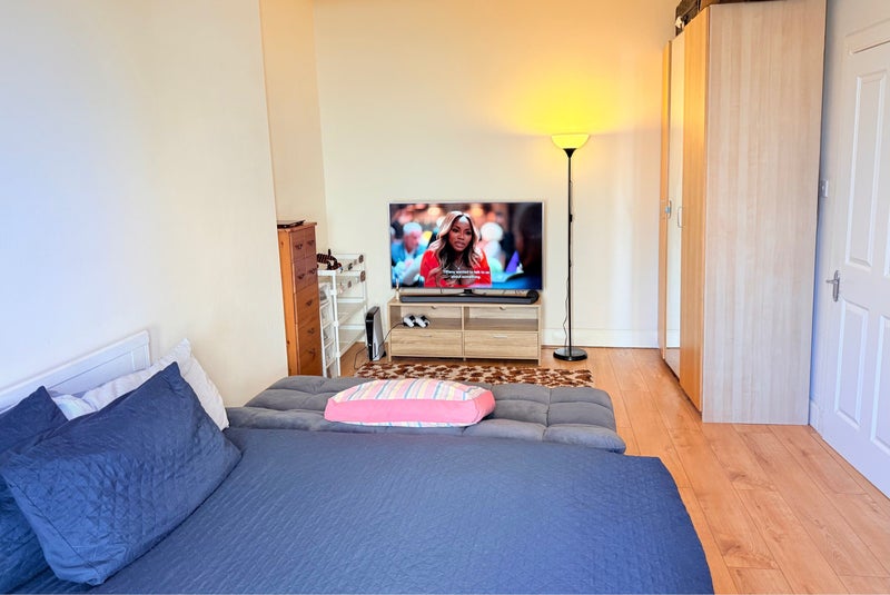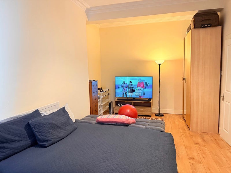 A spacious furnished room in a 2 bedroom Flat in the City Center, 2mins walk to a Tram Station in Leith for short stay in March 2026 as I’m away on holidays