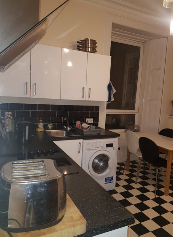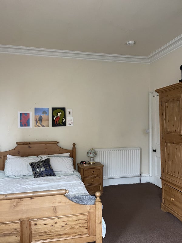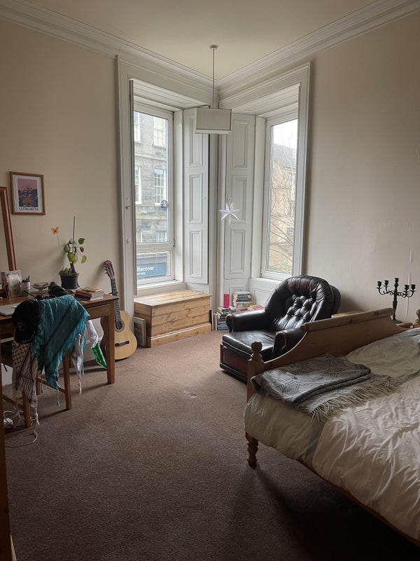 Large king-sized room available in bright super spacious flat on good connected bus route to the city centre, and only a short walk to the vibrant Shore with its many bars, restaurants, and shops. Parking available no permit required.