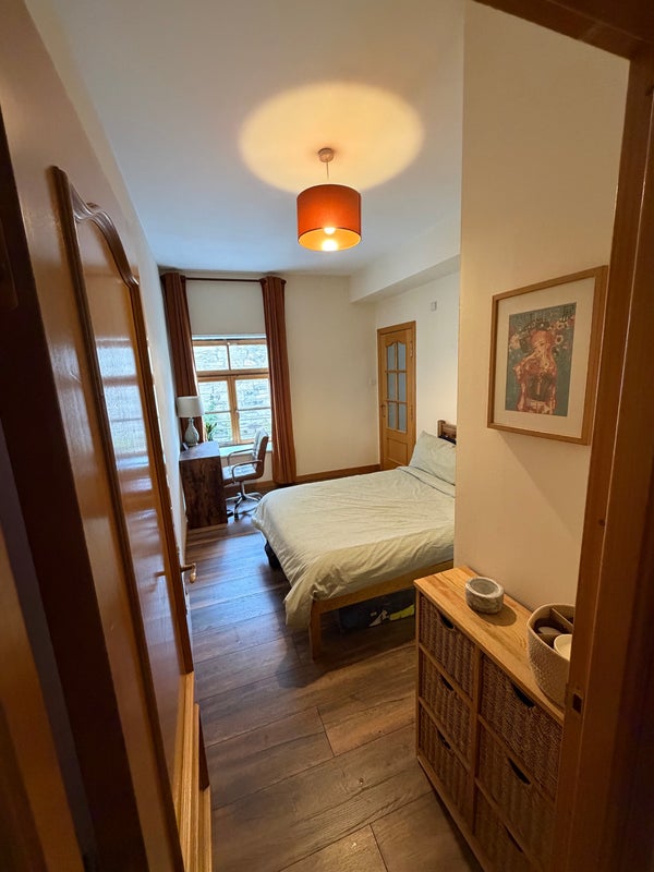 The room is a double bedroom with private ensuite bathroom and a built-in wardrobe. It’s in a quiet flat shared with a married couple in our early 30s who both work full-time.