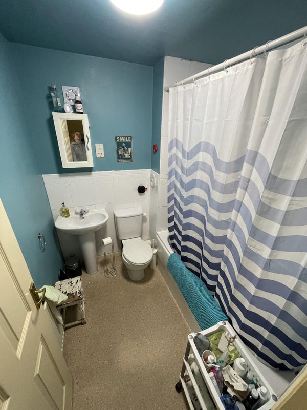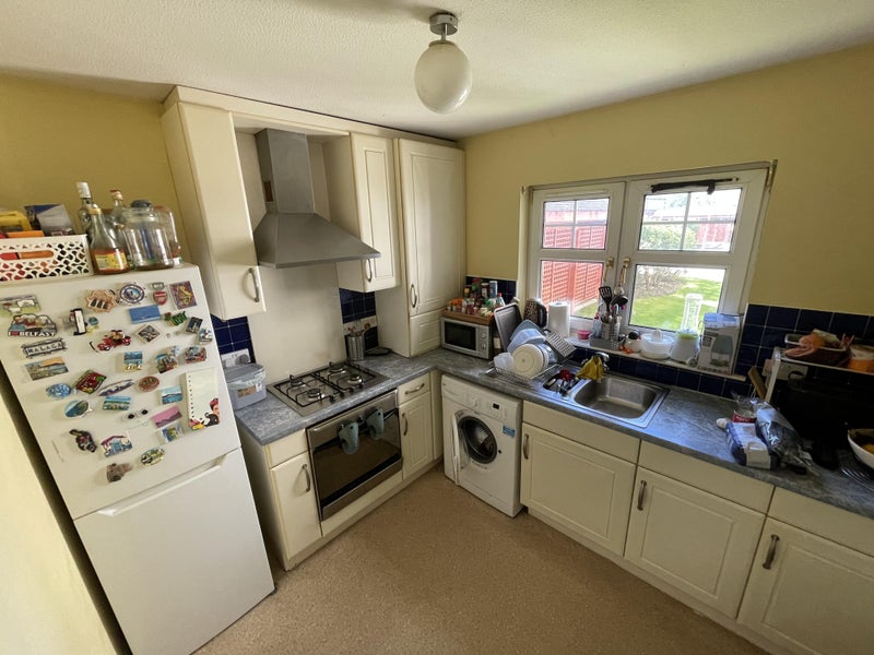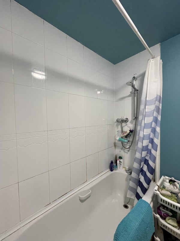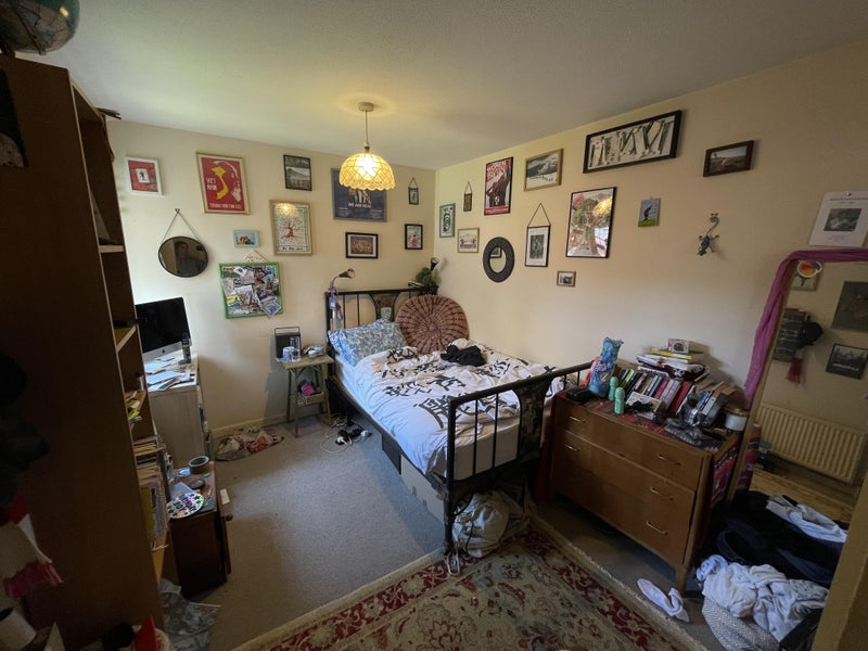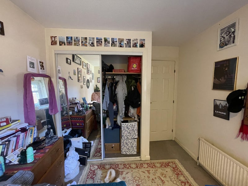 The room is decent sized with a built in wardrobe. Most of the furniture in the photos is coming with me but there will be a new bed and the same chest of drawers. The bathroom with bath and shower is shared. The kitchen isn't massive but we have a gas hob, double sink and fridge freezer - plenty of space for two people.