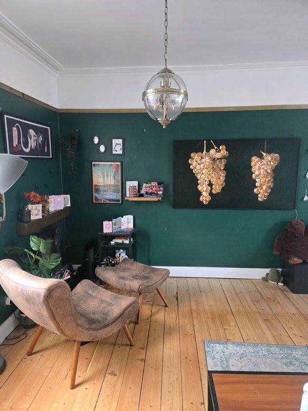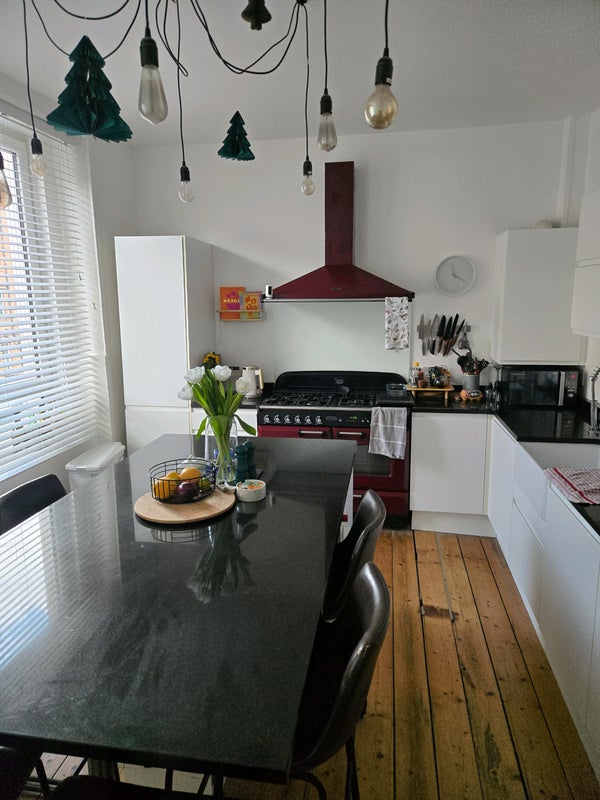 The flat has a large fully equipped kitchen with a massive rangemaster, so if you love cooking you'll hopefully get great use out of it. The living room is cosy but bright, and there is an additional little mini office nook that I had set up for when I was WFH which I rarely do now so if you do WFH that can be an option for you to use.