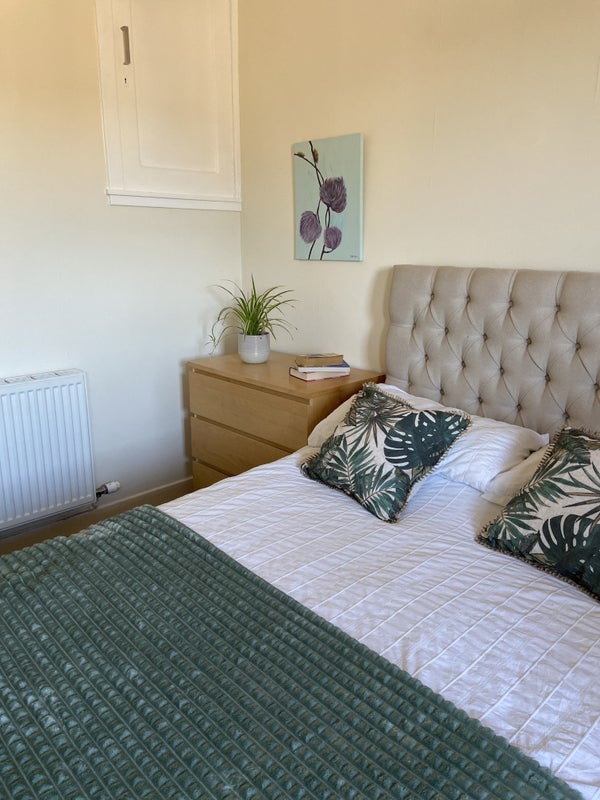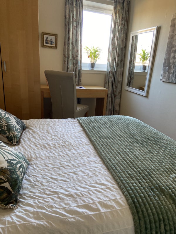 Room is fully furnished with double bed, located to the rear of the house.. shops 5 mins walk. close to supermarket, Tesco Lidel. Pharmacy. all main bus routes. 20 minutes to city centre. Walks and parks 5mins .. have a small dog so flatmate must be dog friendly. I have travelled lots round the world..