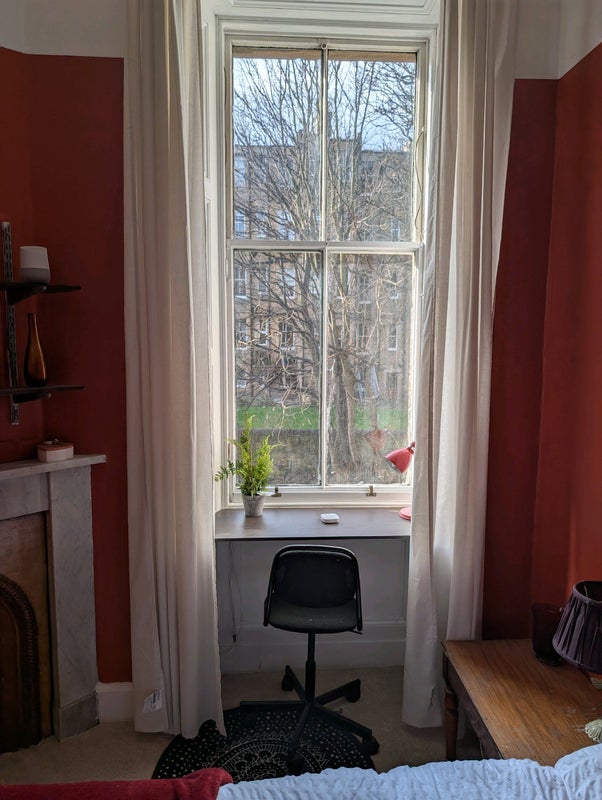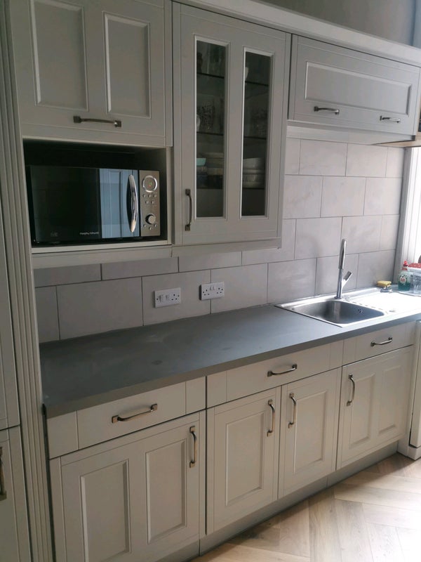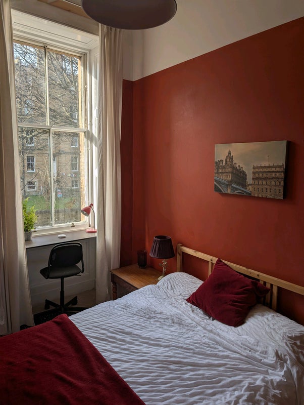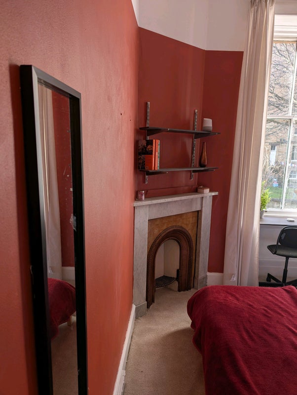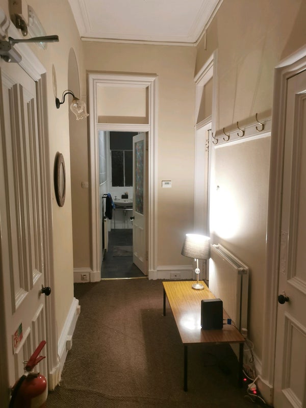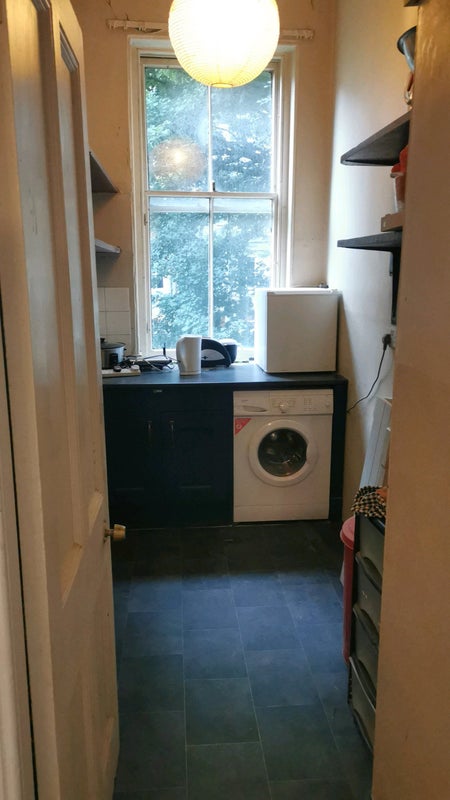 Recently refurbished flat with large kitchen utility room all appliances. Room has large built in wardrobe, desk, shelving, and double bed.