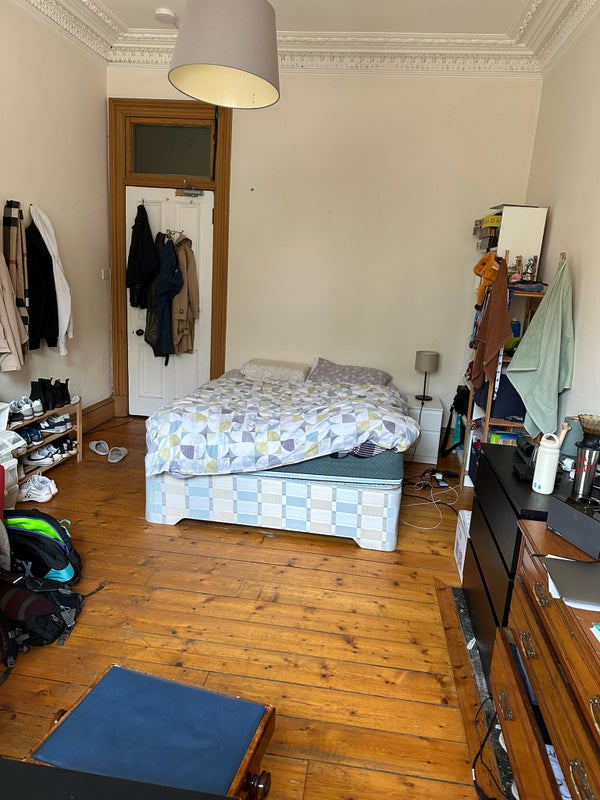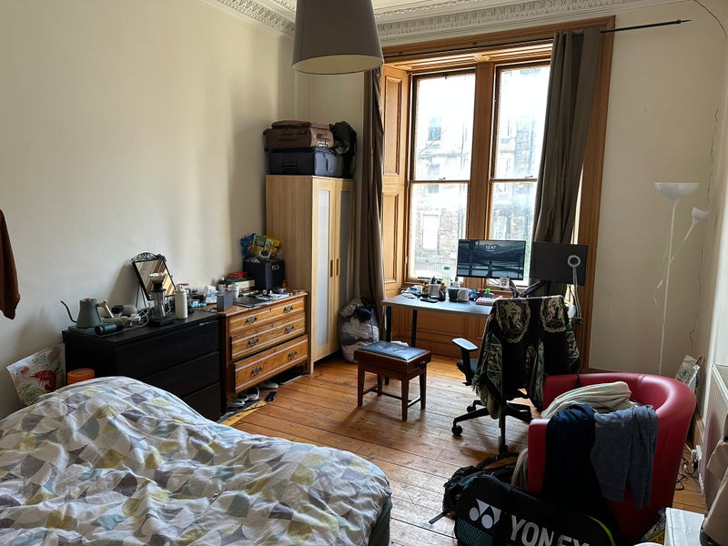 A furnished double room is available in a spacious Marchmont flat from 19th April, ideal for a young professional. The flat is shared with two tidy and friendly professionals in their late 20's, and we’re looking for someone similar who values a clean, respectful living environment.