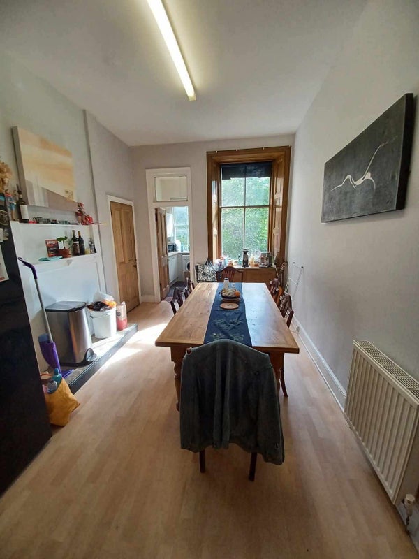 We are looking for a new flatmate for our 6 bedroom flat. The flat is spread out across two floors and features a large kitchen, a living room area, and two bathrooms. The available room is in the basement area.