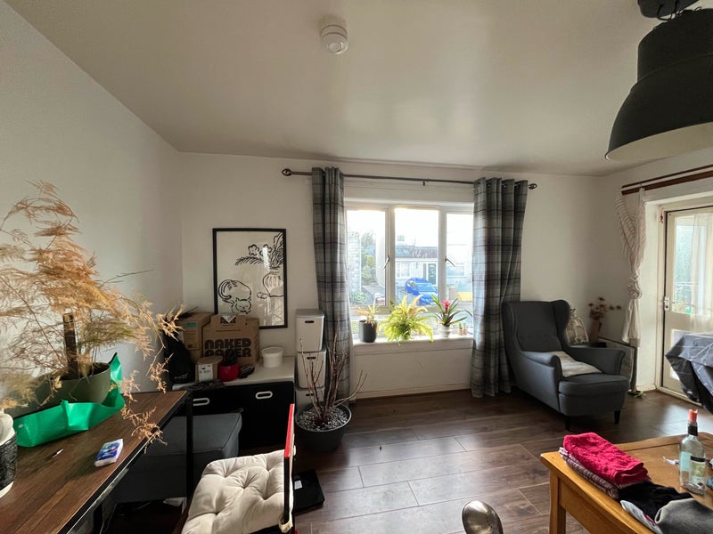 Room for rent 5 min walk from kings campus. Solid desk, closet and drawer space and natural lighting with a view of the cragg/Arthur's Seat. Gas hob kitchen, shared toilet and shower, spacious living room and balcony. Available for a short term, until late June/early July