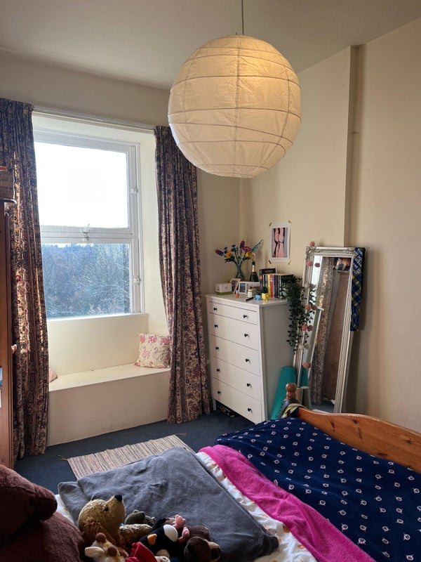 Double room available in spacious flat in Marchmont from 17th May One of our flatmates is moving out, so we are looking for someone to fill their room in our 5-bedroom flat. The flat has two floors and a large living room/kitchen area with a lovely view of Arthur’s Seat. The bedroom is spacious and has lots of storage.