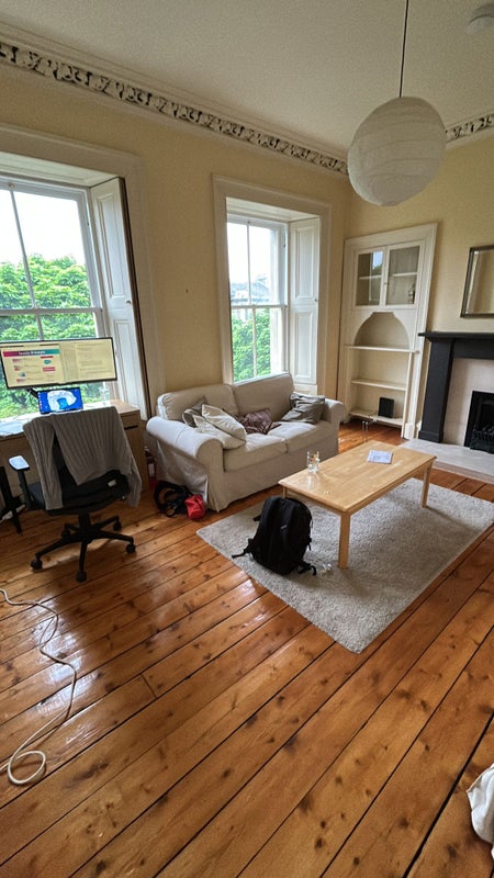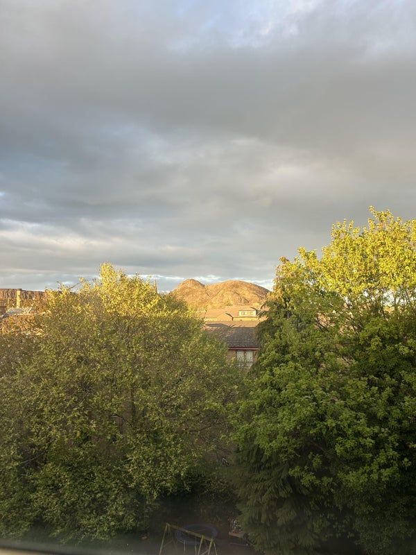 It's a lovely flat on the top floor in Marchmont, right next to the Meadows with a stunning view of Arthur's seat and it gets both morning and evening golden hours!