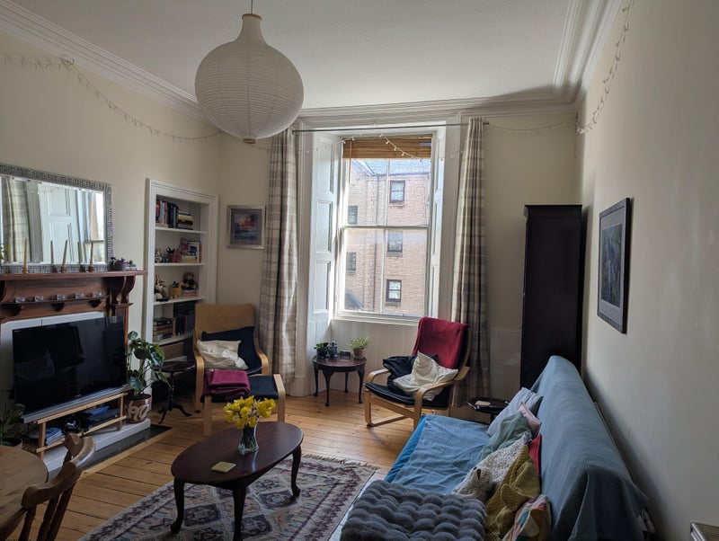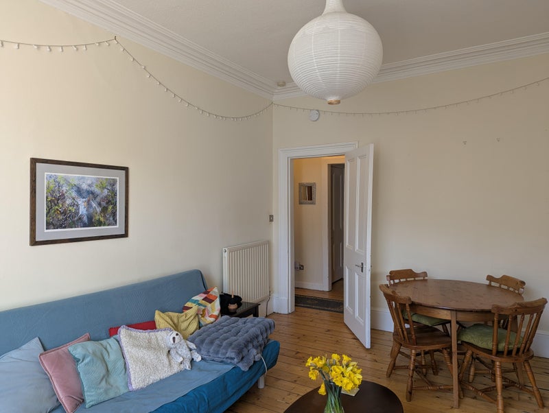 A quiet, fully furnished double room is available in a cosy two-bed flat ideally located between The Meadows and Holyrood Park. The flat is just a 2-minute walk from South Clerk Street with excellent bus links across the city. It’s around a 5-minute walk to the University of Edinburgh, and about 20 minutes on foot to the city centre.